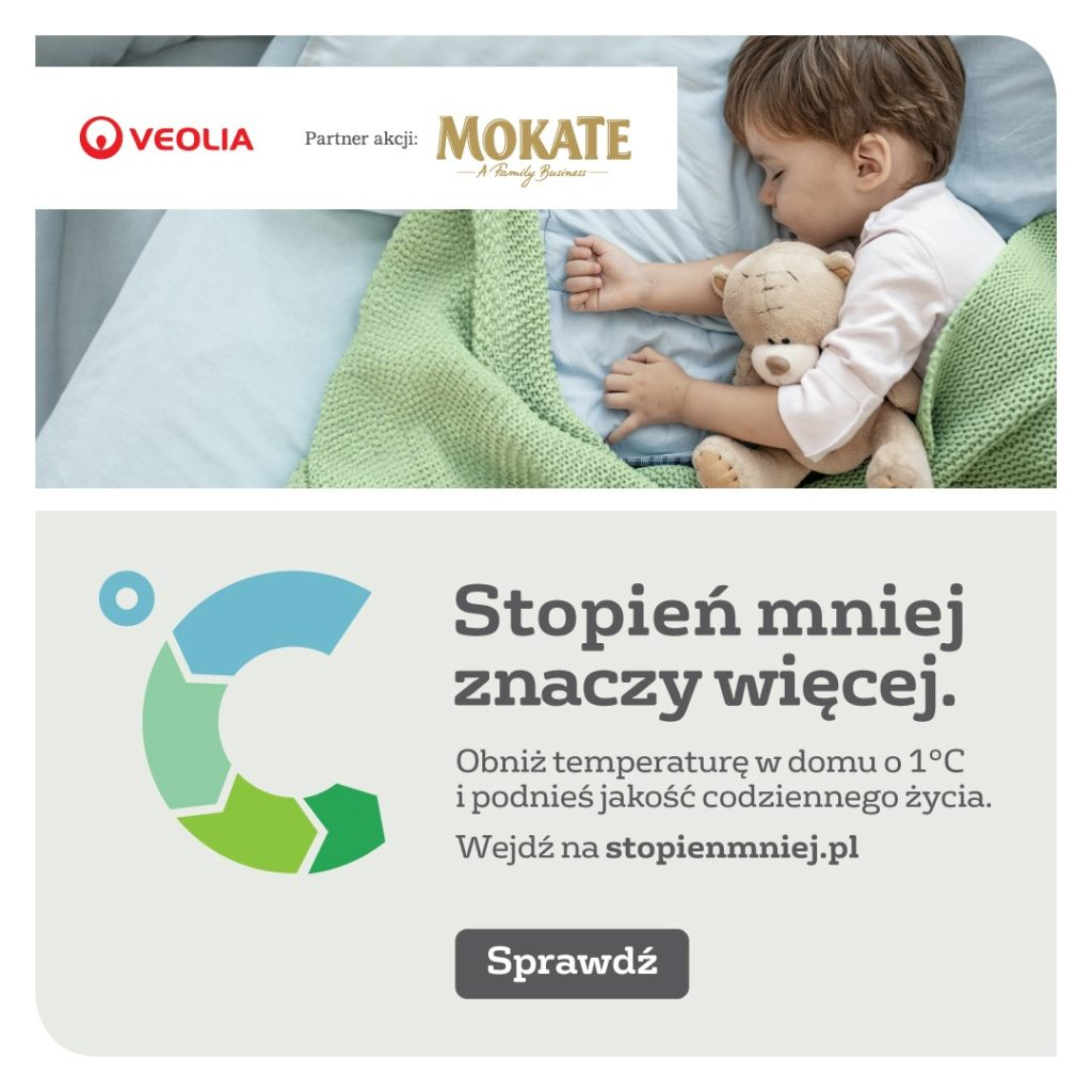 MOKATE zostało partnerem kampanii edukacyjnej „Stopień mniej znaczy więcej”. Wspólnie działamy na rzecz oszczędzania ciepła. Akcja promuje działania, które może podjąć każdy z nas, aby wesprzeć ochronę zasobów naturalnych – obniżenie temperatury nawet o 1°C robi różnicę! Organizatorem kampanii jest Grupa Veolia w Polsce, a MOKATE – jej partnerem. Program ruszył 6 listopada 2023 r. i potrwa do maja 2024 r. Patronat nad projektem objęli Prezydent Poznania, Jacek Jaśkowiak, oraz Urząd Miasta Łodzi.
